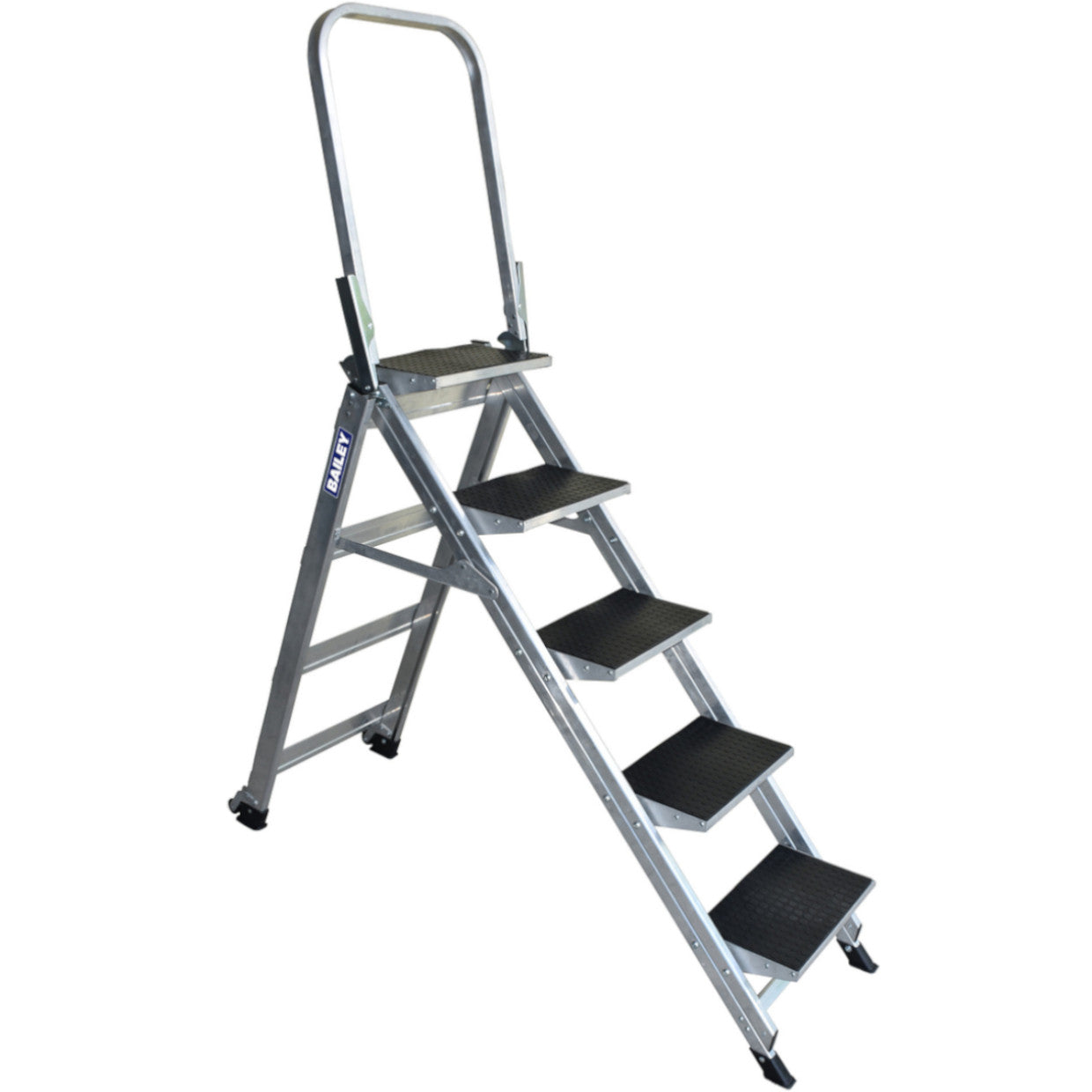 Chuck it in the ute, head to your next job, and rest easy knowing youâve got the toughest, sturdiest ladder around. The BAILEY Platform Safety Steps Stairway Ladderâbecause you deserve better than that wobbly old thing youâve been using.