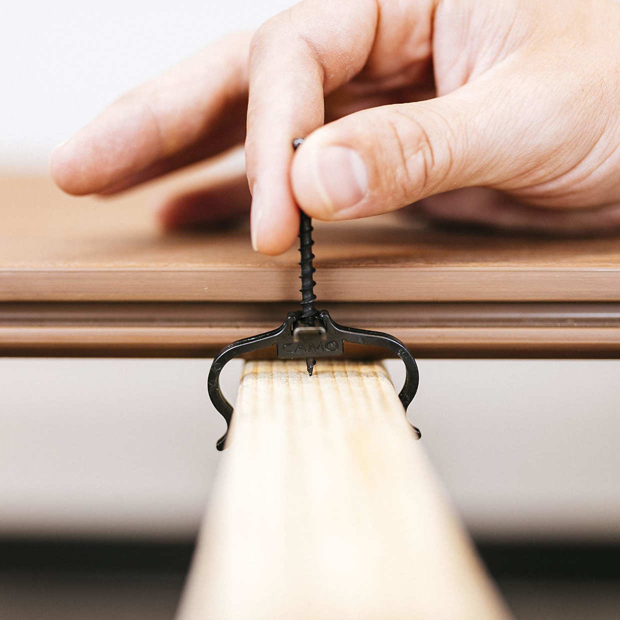 CAMO deck clips make installing grooved decking on wood or metal framing easy for everyone. Fasten them by hand with the included NEVER-MISS™ Guide or while standing up with the ClipDRIVE™ or DRIVE™ tool.