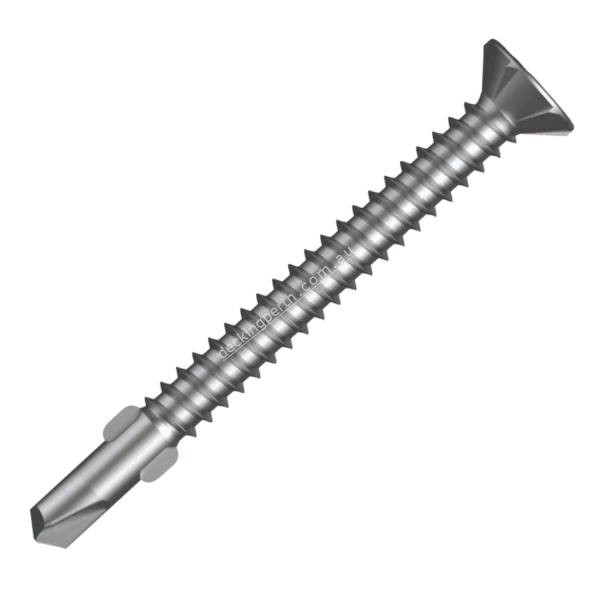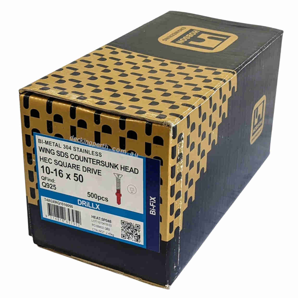 HOBSON - Steel Frame Decking Screws, Self Drilling 10g x 50mm Winged Point, Countersunk Head, 304SS SQ2 Drive