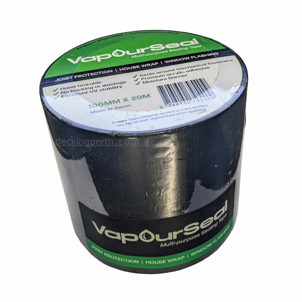 Mitsubishi Chemicals Vapour Seal is a high-tack matte black resin cloth tape with strong UV performance, stability and ageing characteristics. The product is designed to form permanent and sustainable seals and protection on top of joists bearers and other decking sub frame members.